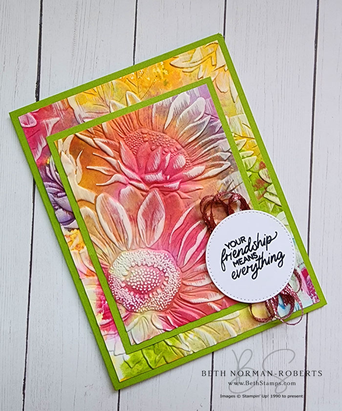 Sunflowers 3D embossing folder is being showcased today. My inspiration came from a video I saw, done by my friend, Tina Zinck. Tina is a sweet lady who inspires me greatly.