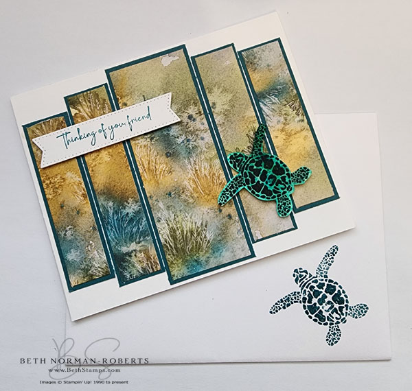 I like watching sea turtles on television and recently enjoyed watching them on a relaxing TV channel This relaxing nature station has sounds of waves of the ocean and birds chirping and singing. This past week I caught sea turtles underwater which inspired me to create this card.