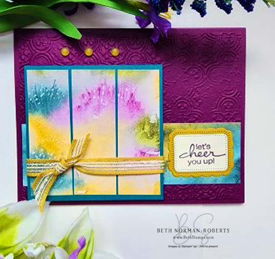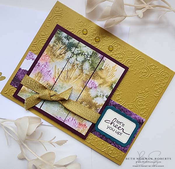 Thoughtful Journey Designer Series Paper (DSP) is gorgeous. There are so many ways to use it, and today I created 6 cards, using Wild Wheat, Blackberry Bliss and Pretty Peacock. One of the reasons I love Stampin’ Up! is that the ink, cardstock, color blends, ribbon and DSP coordinate beautifully.